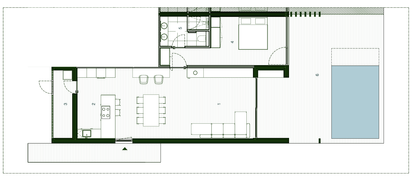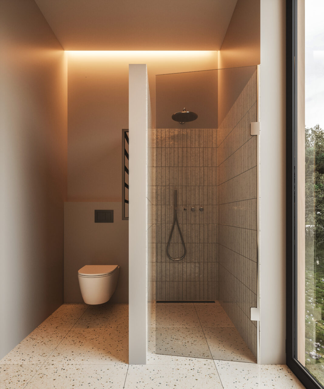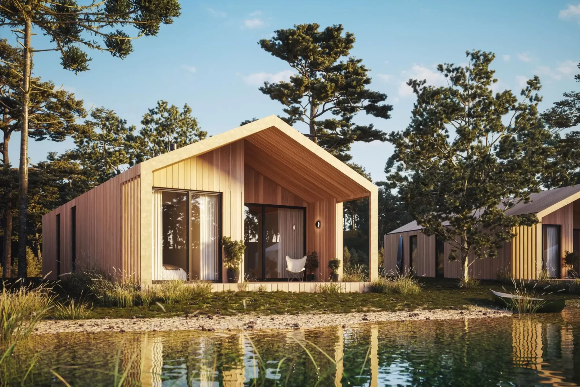Lakehouse V1 to kameralny domek stworzony z myślą o osobach poszukujących ciszy, prywatności i bliskości natury. Wnętrze obejmuje sypialnię z łazienką ensuite oraz jasny salon z kuchnią w otwartym planie, który płynnie łączy się z prywatnym tarasem i basenem z widokiem na jezioro.