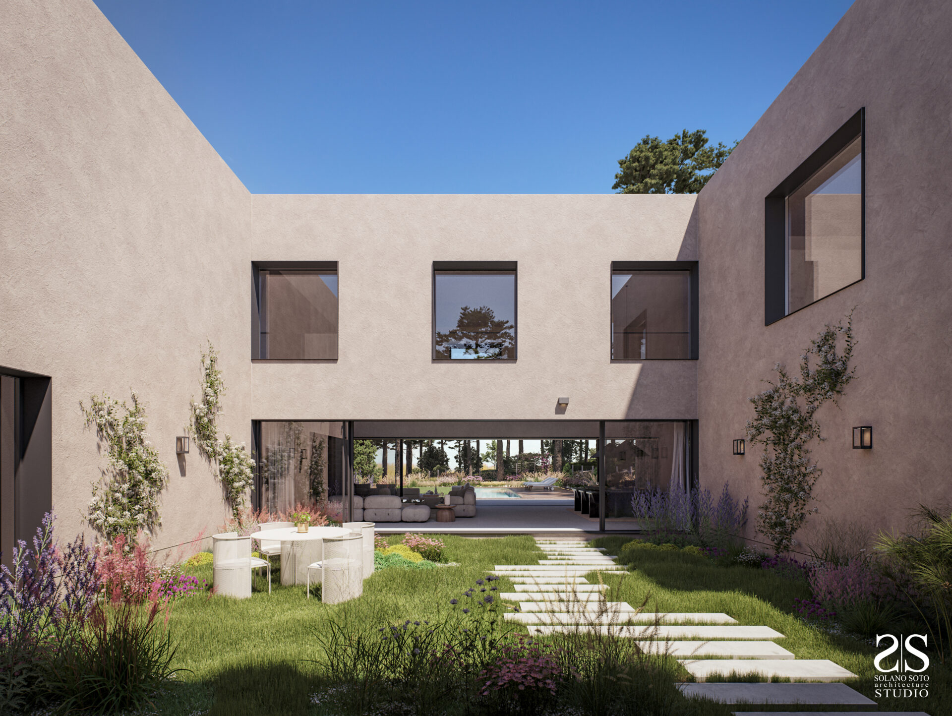 Cztery sypialnie, przestrzenny salon z otwartą kuchnią i jadalnią i prywatny ogród z basenem.