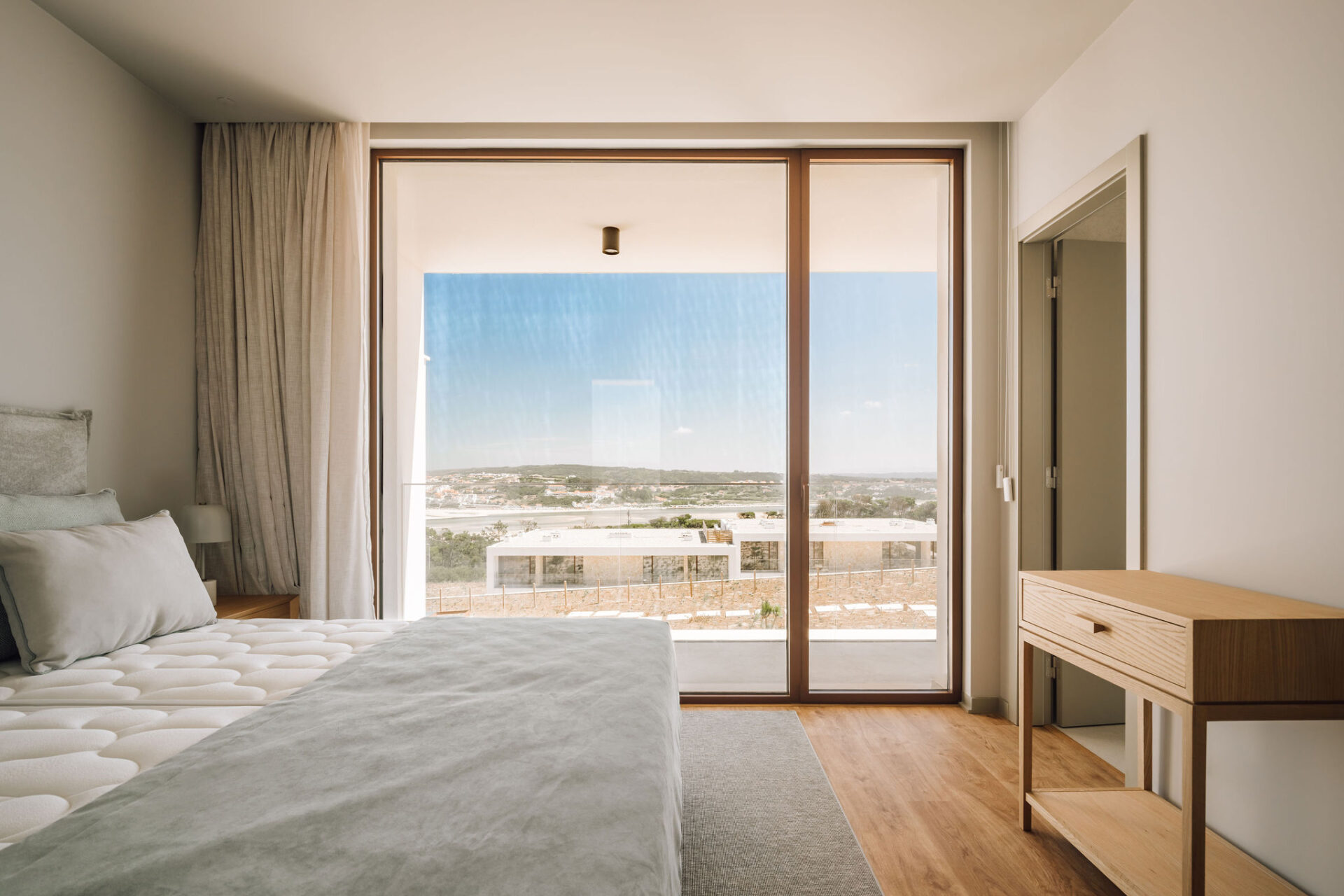 Położone w pięciogwiazdkowym resorcie, wille szeregowe oferują spokojne otoczenie i zachwycające widoki na ocean Atlantycki i lagunę Óbidos. Każdy dom posiada trzy sypialnie z prywatnymi łazienkami, otwartą kuchnię oraz jasne przestrzenie dzienne, które sprzyjają relaksowi i wygodzie. Atmosfera spokoju i subtelnej elegancji, gdzie architektura harmonijnie współgra z naturą.