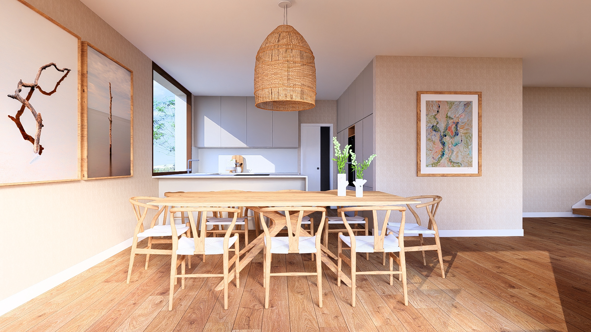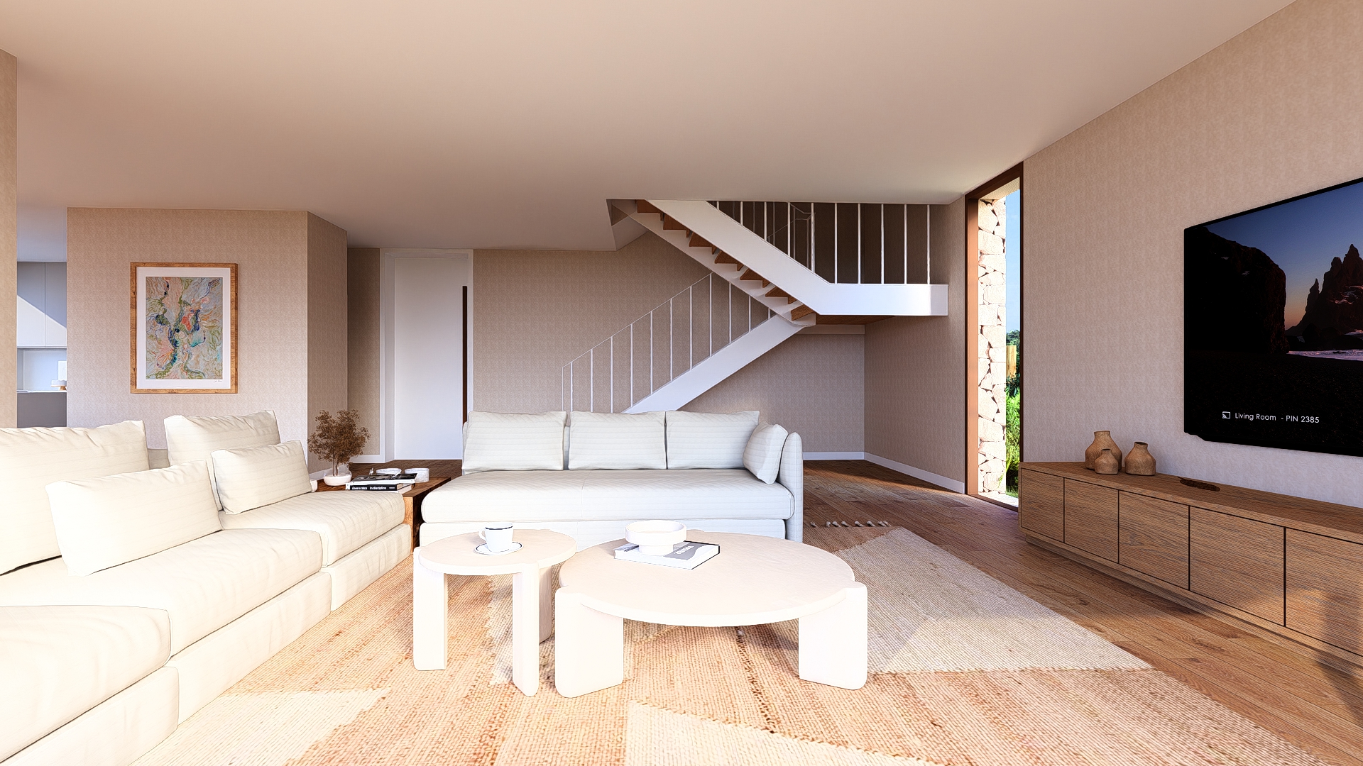 Ta elegancka, dwupoziomowa willa z trzema sypialniami została zaprojektowana z myślą o komforcie i harmonii z otoczeniem. Na parterze znajduje się przestronny salon z dużymi przeszkleniami, który płynnie łączy się z nowoczesną, w pełni wyposażoną kuchnią — idealną do codziennego życia i spotkań w gronie bliskich. Piętro zajmują trzy jasne sypialnie typu ensuite, z własnymi łazienkami, zapewniające prywatność i wygodę wszystkim domownikom.