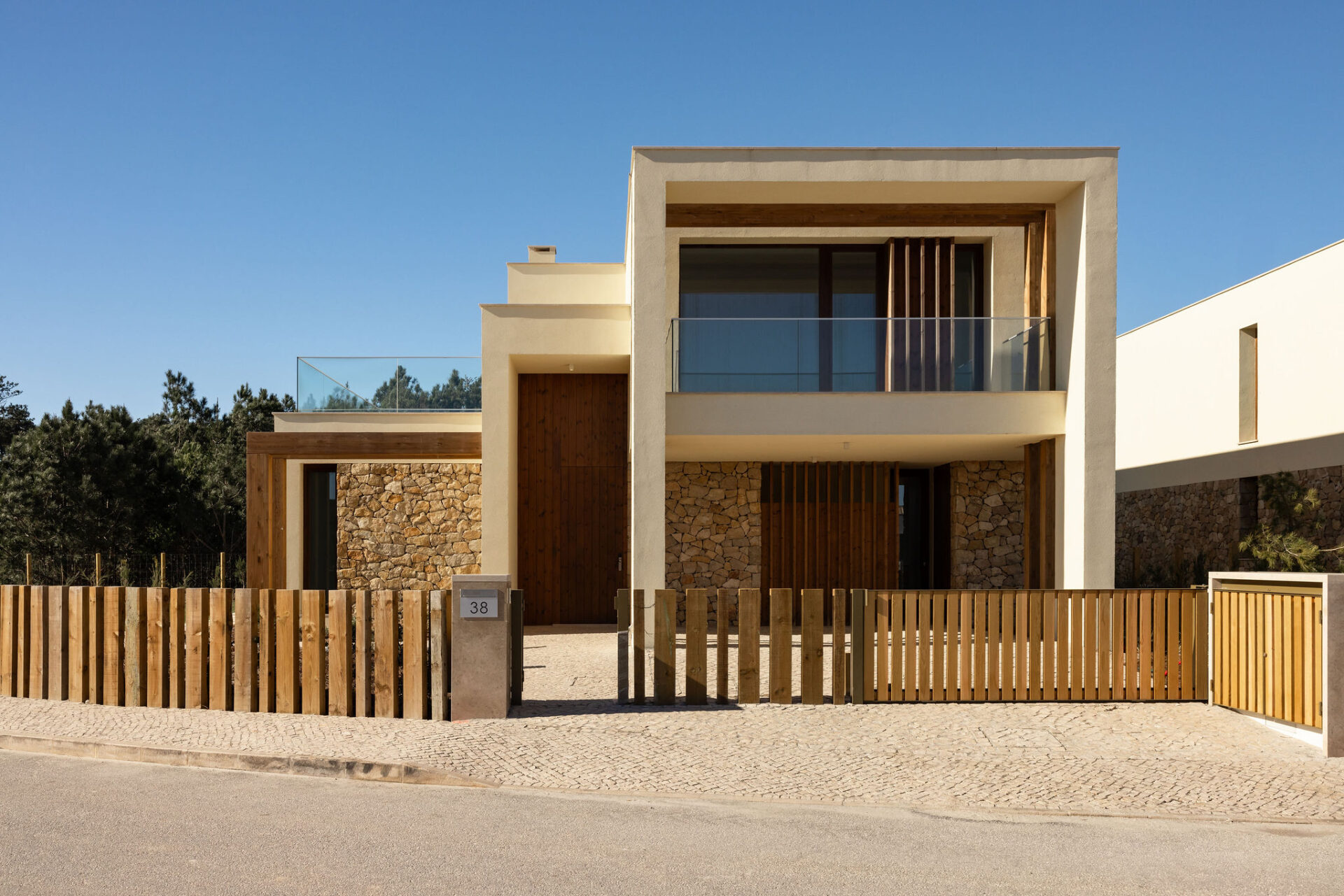 Architektura willi opiera się na nowoczesnym minimalizmie inspirowanym naturą – dominują naturalne materiały, takie jak drewno, oraz paleta stonowanych, ziemistych kolorów. Całość harmonijnie wpisuje się w otaczający krajobraz, tworząc atmosferę spokoju i wyrafinowania. Przestronny ogród z prywatnym basenem i tarasem wypoczynkowym to idealne miejsce na relaks i kontakt z naturą. Prywatne miejsce parkingowe na dwa samochody dopełnia funkcjonalności tej wyjątkowej nieruchomości. To idealna propozycja dla tych, którzy szukają luksusowego stylu życia w spokojnym, naturalnym otoczeniu.
